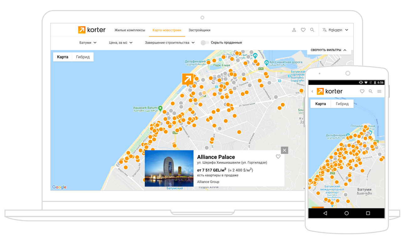На сегодня Korter ― одна из самых масштабных площадок для поиска недвижимости. Он работает в десяти странах, а с лета 2018 года ― и в Грузии (на базе акселератора недвижимости Flatfy).