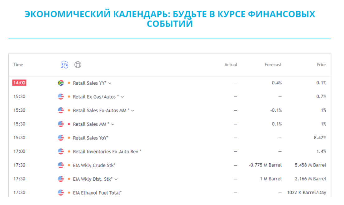 Один из самых важных инструментов. Он позволяет сделать прогноз на поднятие или падение цены. В этот календарь включены ключевые события и новости глобальной экономики, финансов и политики.