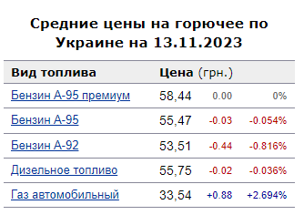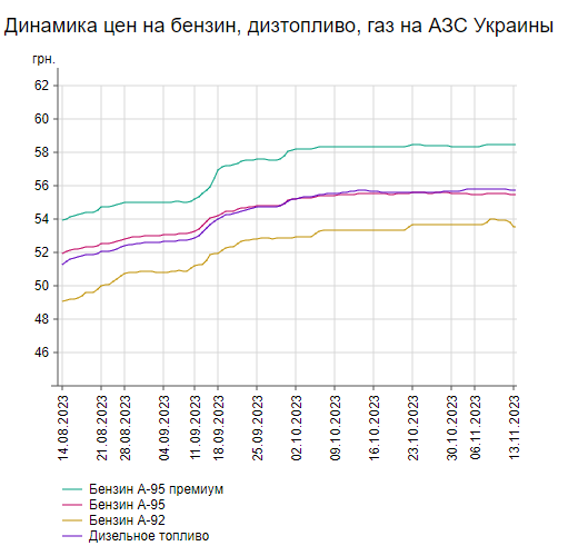 - Все виды топлива значительно подорожали в стоимости с августа по ноябрь 2023 года (бензин – А-92 с 49 на 54 грн, ДТ – с 51 до 56 грн, А-95 – с 52 до 56 грн).