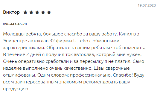Автоклавы отечественной компании UTEHO имеют огромное количество положительных отзывов от пользователей. Вот несколько примеров: