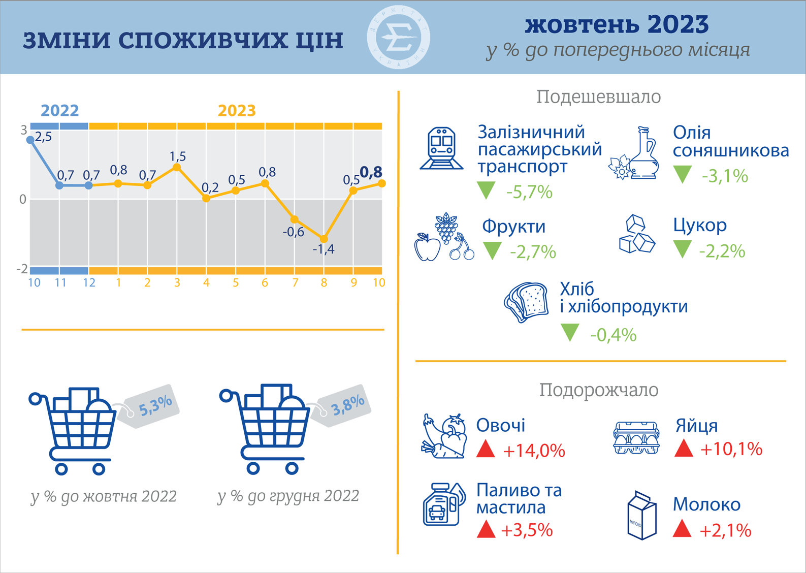 - Резкое подорожание продуктов питания, вызванное внутриполитической ситуацией в стране, началом боевых действий и девальвацией гривны и ростом цен на топливо. В среднем цены на все группы товаров выросли за 2022-2023 годы на 100-300%.