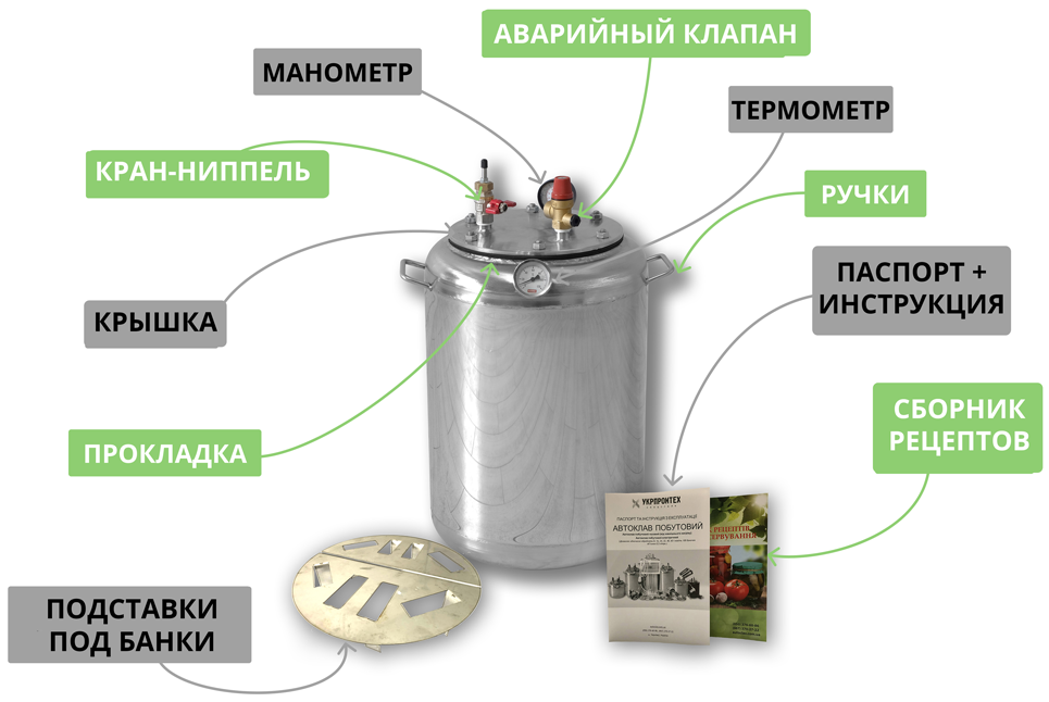 - Автоклав А-24 электро оснащен электрическим блоком управления. Изготовлен из пищевой нержавеющей стали. Имеет оптимальный объем загрузки банок.