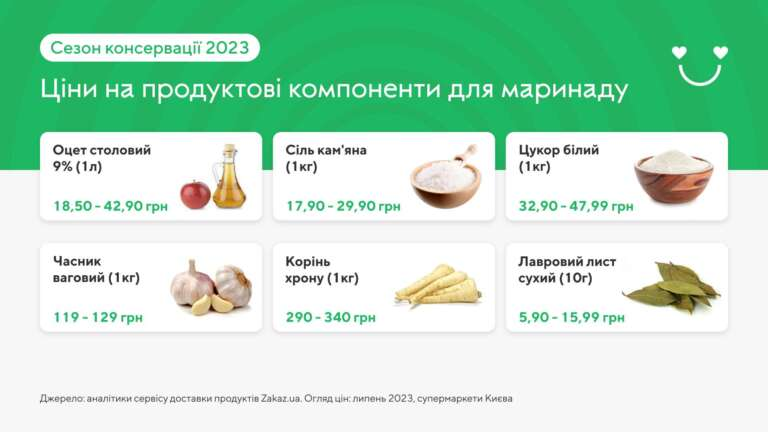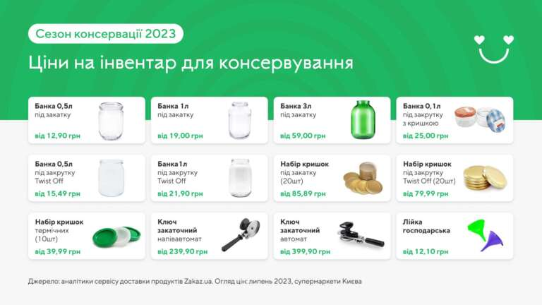 Ниже мы привели цены в сезоне 2023 на инвентарь для консервации и продукты для маринада.