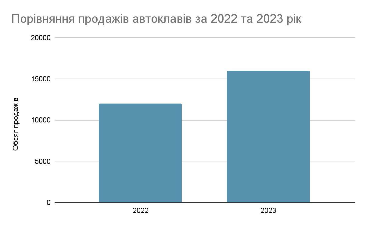 Согласно данным UTEHO, рынок автоклавов в период с 2022 по 2023 год демонстрирует значительный рост продаж — на 25%.