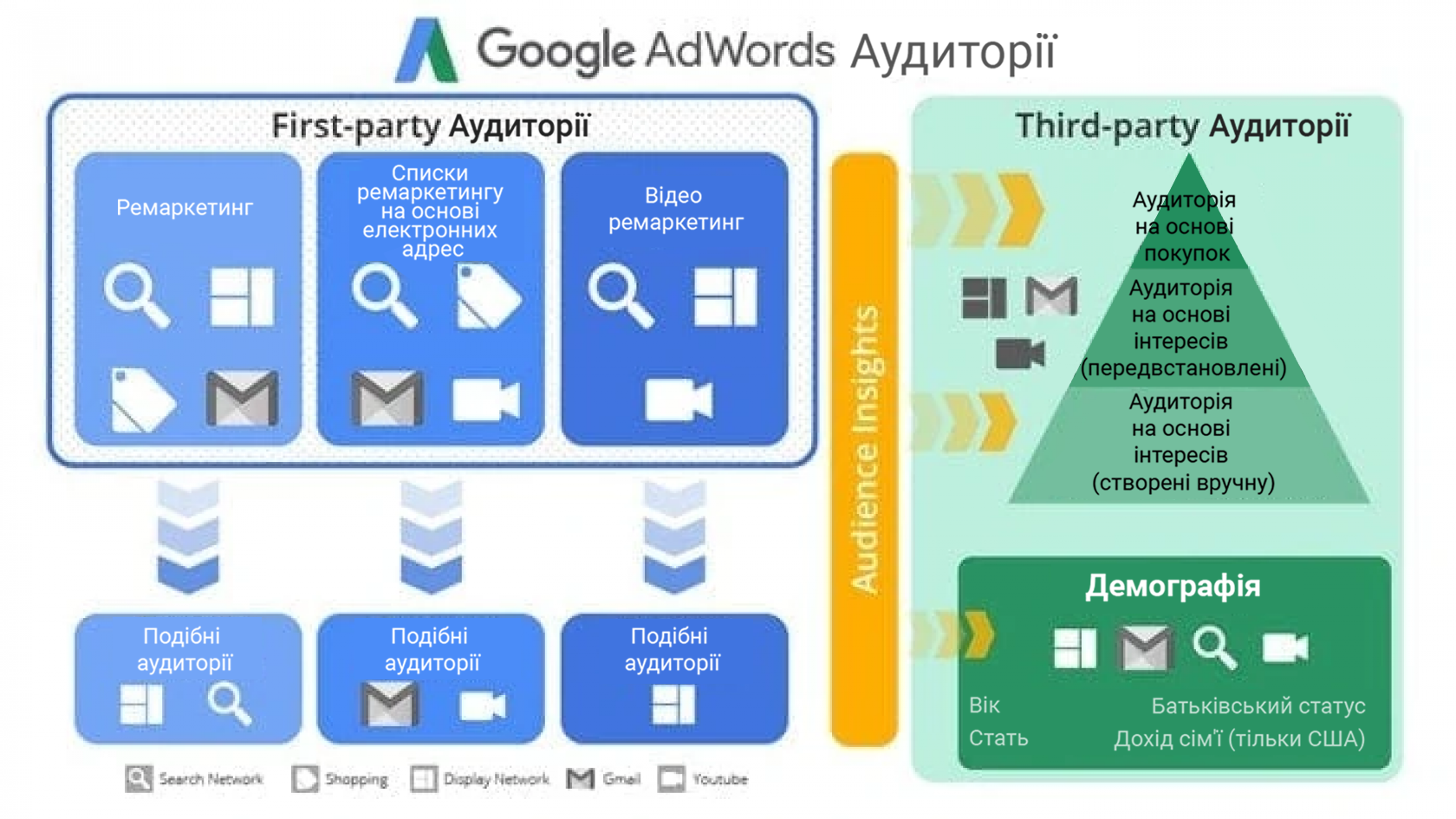 - В интерфейсе Google Ads перейдите в раздел «Аудитории» и создайте новую аудиторию ремаркетинга. Выберите тип «Аудитория на основе данных о товарах» и укажите URL Вашего фида данных в Merchant Center.