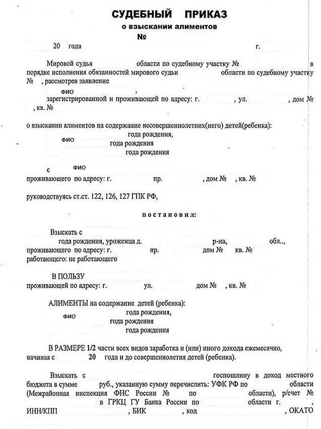 - Взыскание алиментов. Требовать в приказном порядке можно только алименты, которые не выплачиваются за несовершеннолетнего ребенка. Споры относительно вопросов отцовства, брачных отношений и другие семейные вопросы не решаются таким способом.
