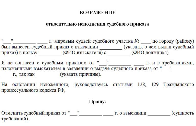 Возражения на судебный приказ составляются в письменной и свободной форме. Однако рекомендуется придерживаться определенной структуры: