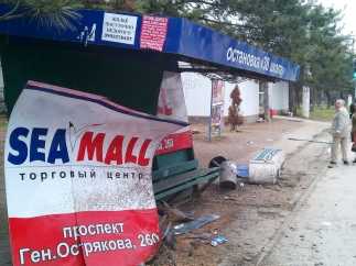 В Севастополе в новогоднюю ночь пьяный водитель на белых "Жигулях" не справился с управлением и въехал в остановку, где находились с десяток горожан, отмечавших праздник.