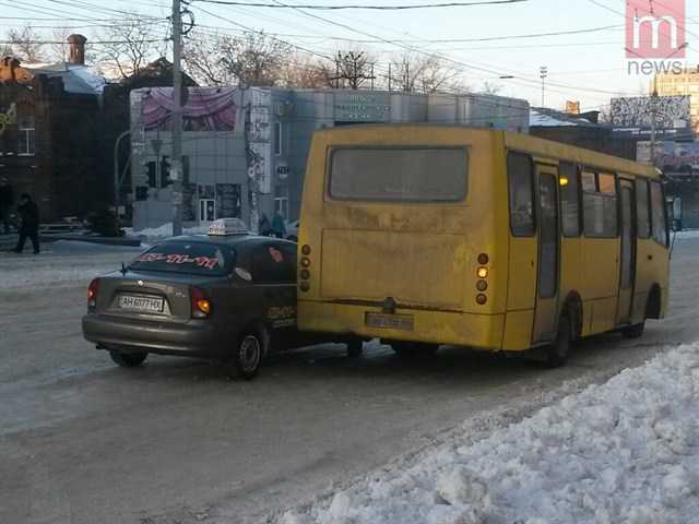 Так, водитель автомобиля одной из служб такси города не справился с управлением на обледенелой дороге, в результате чего легковушка задела маршрутку № 146.
