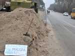Десятки автомобилистов собрались на Варшавской трассе и расчищают ее от песка.<