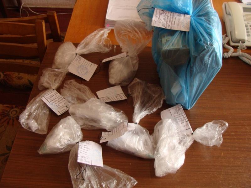 Во время осмотра легкового автомобиля под передним сиденьем в картонной коробке милиционеры обнаружили полиэтиленовые пакеты весом 400 грамм с веществом белого цвета, похожим на амфетамин. Свидетелями выявленного правонарушения стали местные "самообороновцы", которые были вызваны на место происшествия.