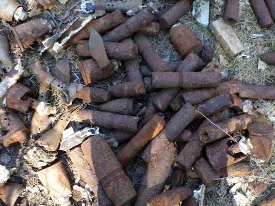 Среди них - 23 минометные мины и 86 единиц артиллерийских снарядов времен войны калибра от 23 до 122 мм.