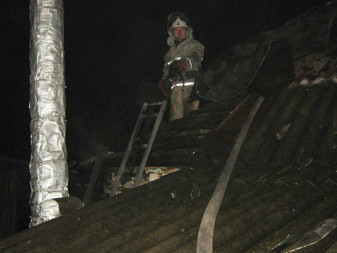 По прибытию было установлено, что огонь с сарая, который вплотную пристроен к зданию перекинулся на кровлю жилого дома. Пожарные провели боевое развертывание и приступили к тушению. Так как масштаб пожара вступил больших размеров было принято решение о привлечении дополнительных сил и средств из 4-й Государственной пожарно-спасательной части. Силами двух отделений и в количестве 10 человек личного состава пожар был локализован в 20:50, ликвидировано - 21:23. Огнем уничтожены перекрытия и кровля сарая на площади 25кв.м. и жилого дома на площади 10 кв.м. Причина пожара сейчас устанавливается.<