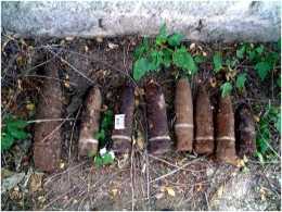 Следующие 5 находок: 3 минометные мины и 2 артиллерийские снаряды были обнаружены того же дня в Голосеевском районе на территории парка отдыха «Феофания» по адресу ул. Метрологическая.