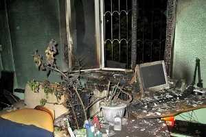 Уже в 02:38 горения укротили. В результате пожара сгорел и был поврежден подоконник, линолеум на площади 10 кв. м, мебель, компьютер, закопчены стены и потолок помещения.