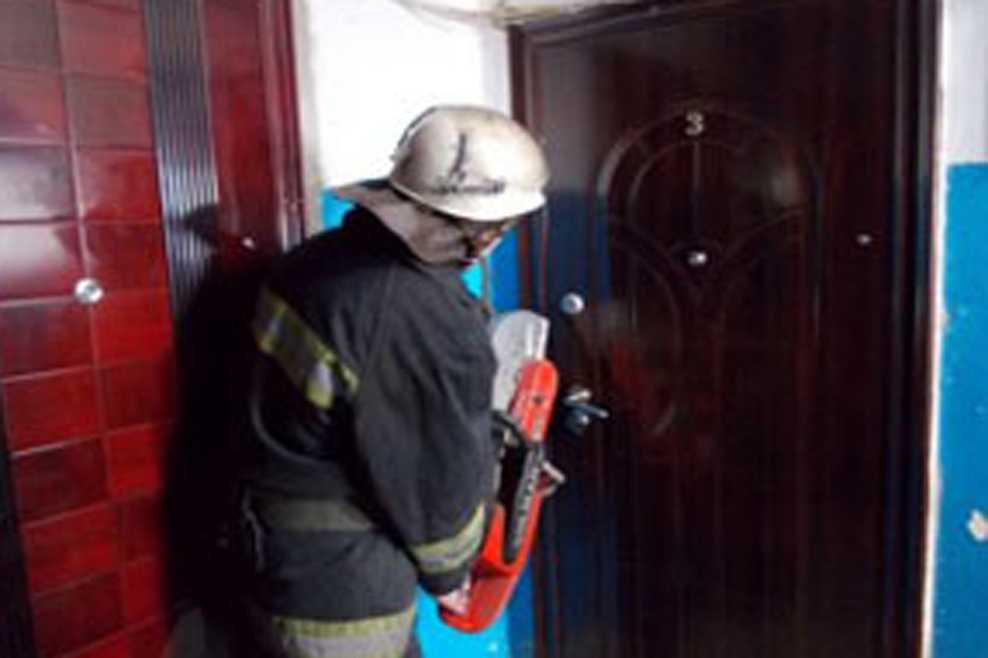 Прибыв к месту вызова, спасатели, с помощью бензореза, открыли входную дверь и предоставили свободный доступ другим службам.