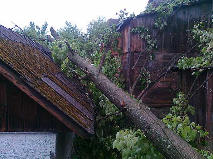 Также 14 мая в 22:01 бойцам 3-й государственной пожарно-спасательной части г. Рахов пришлось спасать от поваленного дерева частное подворье, в Рахове на улице Шевченко. Там тополь упал на кровлю летней кухни.