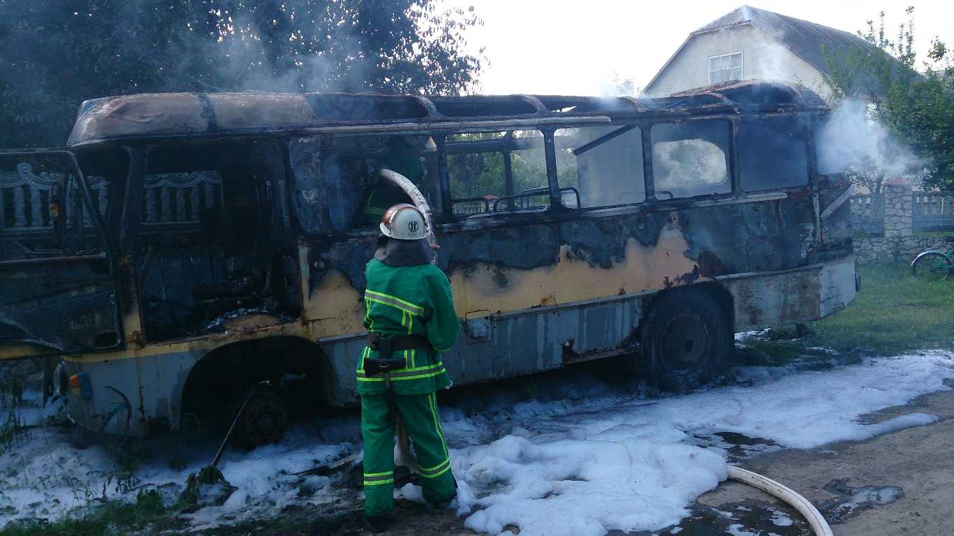 7 июня в 17:20 спасателям города Лановцы сообщили о пожаре старого автобуса ПАЗ-375, что стоит в частном секторе города, возле двора владельца.