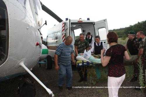 Пограничника Луганского отряда, который 22 июня был тяжело ранен во время вооруженного столкновения с террористами, вчера доставили вертолетом в военный госпиталь города Харьков.