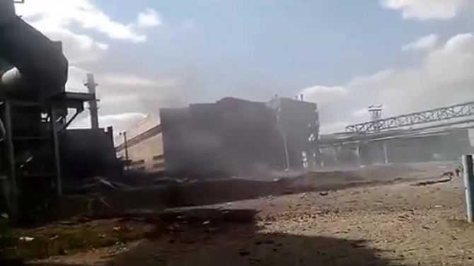 В сети появилась видеозапись, на которой зафиксирована тепловая электростанция в городе Счастье (Луганская область) спустя считанные минуты после обстрела из установок «Град» боевиков. На отснятых кадрах видно дымящиеся и разрушенные здания на территории ТЭС.