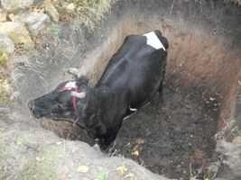 24 октября в 12:43 в службу спасения «101» поступило сообщение о том, что в с. Матишовка по улице Белинского во дворе частного хозяйства корова упала в выгребную яму.