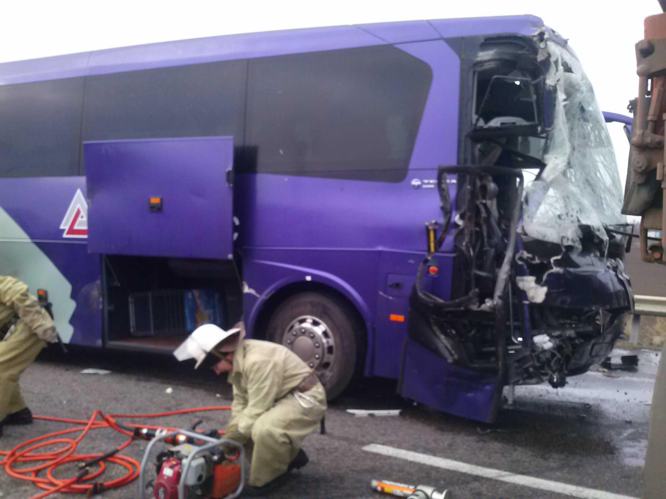 На место немедленно выехал дежурный караул 8-й Державеної пожарно-спасательной части пгт Ставище. По прибытию было установлено, что в результате столкновения автобуса «Темза Сафари» и грузового автомобиля «Камаз 45141», диспетчера автобуса зажало деформированными конструкциями транспортного средства. Спасатели с помощью гидравлических ножниц провели деблокацию потерпевшего. Диспетчера и водителя автобуса врачами скорой помощи был доставлен в Центральную районную больницу пгт Ставище.