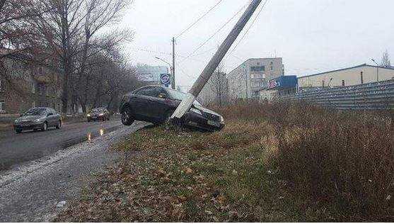 Сегодня в центре Донецка произошло ДТП. На проспекте Богдана Хмельницкого перевернулся внедорожник.