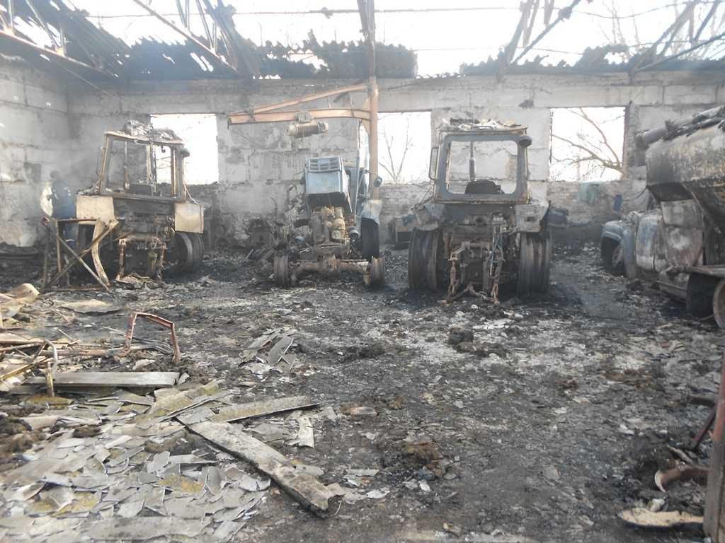 Огнеборцам удалось оперативно локализовать пожар, не допустив его дальнейшего распространения. В целом площадь пожара составила 80 кв. м. Кроме помещения огнем уничтожено и транспорт, что здесь находился: 3 трактора и автомобиль ЗИЛ.