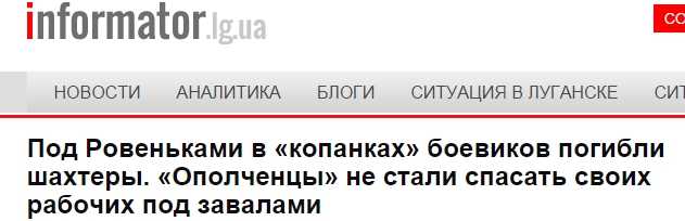 Как сообщил informator.lg.ua источник, в одной из «копанок» в районе поселка Дзежинский произошел обвал породы. Около десяти местных жителей оказались под завалами. «Ополченцы» узнали о трагедии, но долго решали кто будет спасать шахтеров.