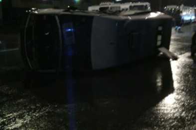Удар пришёлся «маршрутке» в бок, в результате столкновения она перевернулась. На борту находились несколько пассажиров, трое из них получили черепно-мозговые травмы. Оба столкнувшихся транспортных средства получили значительные повреждения.