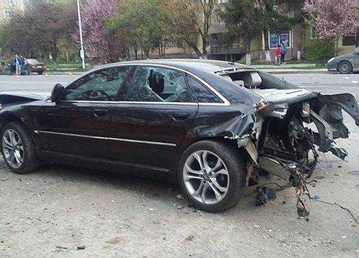 Утром 13 апреля на пр. Свободы вблизи автовокзала в г. Ужгороде произошло ДТП. Водитель черного «Мерседеса» на словацких номерах, 27-летний житель Ужгорода, не справился с управлением иномарки и совершил наезд на припаркованное на обочине черное «Ауди А-8» (эта машина тоже имела словацкие номера).