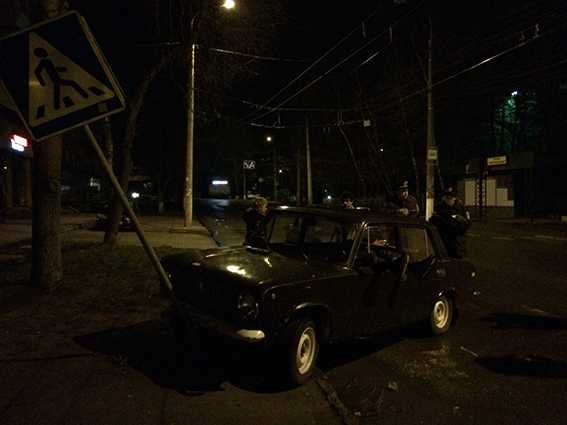 Владелец «Жигулей» заметил из окна, что незнакомец пытается сломать на его автомобиле замки, и сразу позвонил в милицию. На место преступления прибыл объединенный патруль ГАИ и ППС. Через несколько минут правоохранители обнаружили автомобиль и задержали угонщика. Им оказался 18-летний житель одного из сел Хмельницкого района. Парень был в состоянии сильного алкогольного опьянения, не справился с управлением и въехал в дорожный знак.