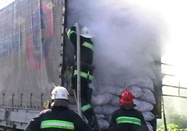 12 мая в 8:45 на 500 км автодороги Львов – Кировоград – Знаменка во время движения произошло возгорание в прицепе автомобиля «МАН», который перевозил брикетированный уголь в мешках.