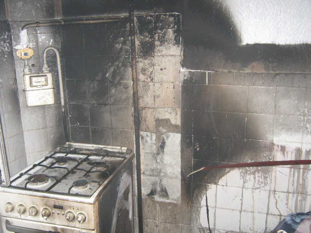 К месту вызова было направлено дежурный караул 4-й ГПСЧ. По прибытию спасателями было установлено, что горит кухня трехкомнатной квартиры. Наблюдалось сильное задымление из окна кухни. В 07:21 пожар был ликвидирован. Огнем уничтожена кухонная мебель на площади 2 кв. м. Погибших и травмированных нет. Причины пожара сейчас выясняется.