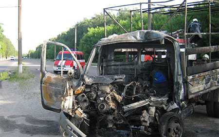 24-летний водитель грузового автомобиля ГАЗ – 330202 не справился с управлением, вследствие чего машина пересекла полосу встречного движения, врезалась в электроопору и загорелась.