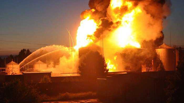 «Всех здесь присутствующих отвели на 600 метров от пожара, поскольку существует еще одна опасность – рядом с этими цистернами, которые сейчас горят, находится еще с десяток цистерн, уже другой компании. В каждой из них по 5 тысяч тонн топлива и в любой момент они могут взорваться», - отметил журналист.