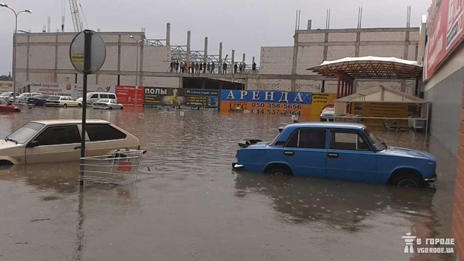 Сегодня в Симферополе прошел сильный ливень. После дождя оказались затопленными несколько улиц города. На Евпаторийском шоссе от ливня пострадал один из торговых центров. В помещении люди ходили по щиколотку в воде, а на парковке практически утонули автомобили.