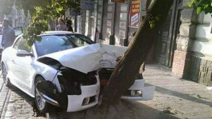 Во Львове легковушка иностранцев врезалась в дерево. Инцидент произошел во время парковки.