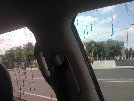 Депутату Андрею Лесику облили зеленкой автомобиль.
