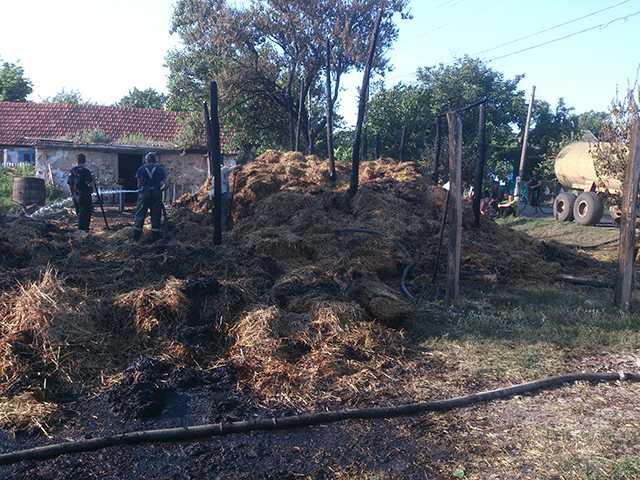 В тушении пожара также принимали участие сотрудники добровольной пожарной дружины «Даяна». В 18:00 совместными усилиями пожар на площади 44 кв. м был ликвидирован. Огнем уничтожено 2 т соломы и 100 листов шифера.