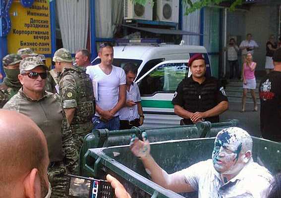Сегодня, 29 июля, представители различных общественных организаций посадили в мусорный бак руководителя Одесского областного фонда государственного имущества, пытаясь заставить его написать заявление об увольнении из государственной структуры.