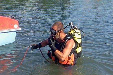 На место трагедии отправилась группа водолазно-спасательного отделения г. Ужгород аварийно-спасательного отряда специального назначения в составе четырех человек. Прибыв на озеро, водолазы, которым показали примерное место утопления человека, определили примерный квадрат поиска и начали обследование грунта водоема. Водолазные работы осложнялись плохой видимостью под водой. Правда, профессионалам понадобилось 15 минут, чтобы с помощью специального снаряжения найти в озере и изъять тело погибшего. Утопленник был найден в 40 метрах от берега на глубине 4 метров.