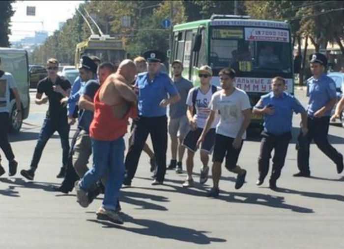 Однако неизвестный не стал слушать предупреждений и отказал в просьбе патриотически настроенных молодых людей.