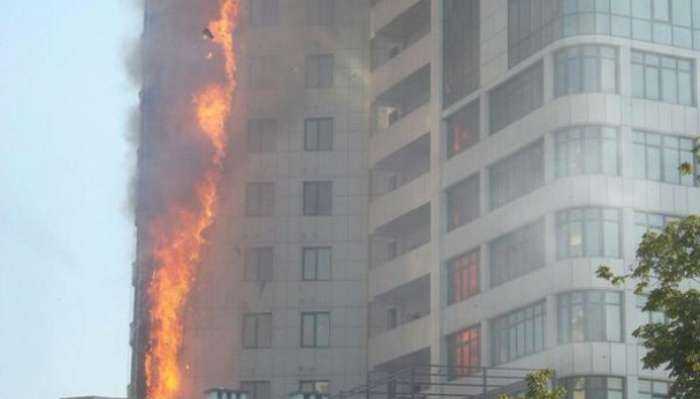 Около 14 часов начался пожар в 22-поверхововому жилом комплексе «Гагарин Плаза». Пожар начался на верхних этажах дома, однако огонь быстро распространился с одной стороны здания по всей высоте.