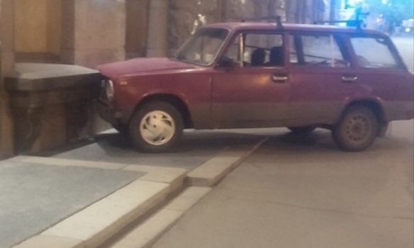 В Харькове автомобиль ВАЗ-2102 врезался в здание горсовета, сообщает местное издание vgorode.ua.