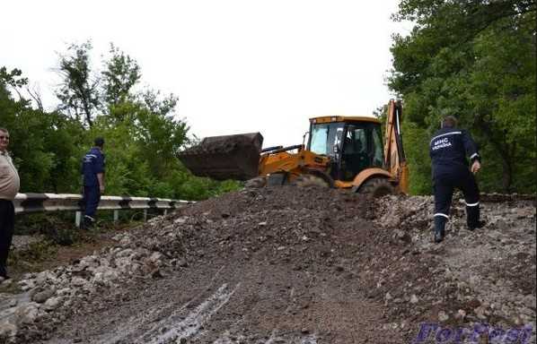 Сотрудники МЧС спецтехникой два часа расчищали трассу. Для ликвидации последствий было задействовано 22 человека и 10 единиц техники. К полуночи они расчистили дорожное полотно, убрав 48 куб м грунта.