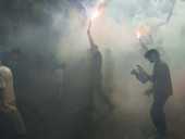 Во время марша в поддержку политзаключенных активисты использовали дымовые шашки и файеры.