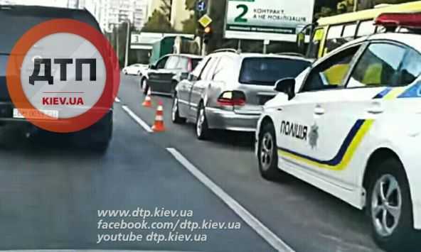 Автомобили получили механические повреждения. У Мерседеса заметно поврежден зад. Полицейские общались с водителем мерседеса на тротуаре.