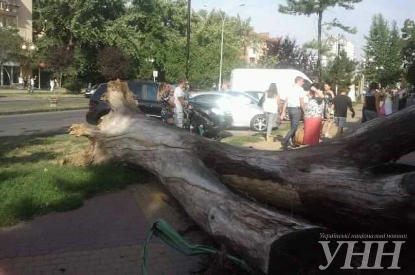 В центре Ужгорода в субботу утром на тротуар упало дерево, сообщает корреспондент УНН с места происшествия.