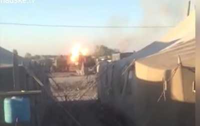 После того, как взорвались все 24 снаряда в машине, загорелся боекомплект, который находился рядом с ней.